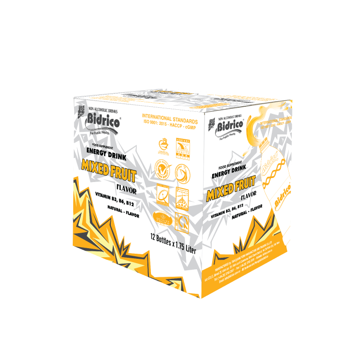 ContactBidrico energy drink mixed fruit flavor 1.75l bottle blends the delicious flavors of tropical fruits and supplements such as taurine, vitamins B3, B6, B12, produced on a modern and closed production line. The product brings an interesting taste and provides a powerful source of energy, inspires endless passion and inspiration.
