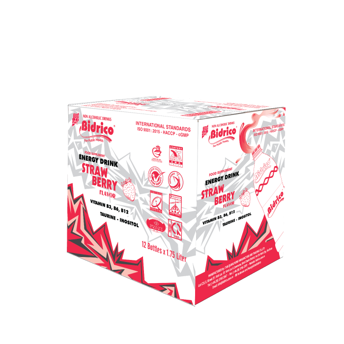 ContactBidrico energy drink strawberry flavor 1.75l bottle brings a new and strange feeling, bursts into energy from the delicious and fresh taste of vibrant red strawberry. Fresh strawberrys, moderately sweet and sour are combined energy including taurine, vitamins B3, B6, B12. Which is the perfect choice for active young people who need to replenish energy, improve concentration and increase performance at work or during exercise.