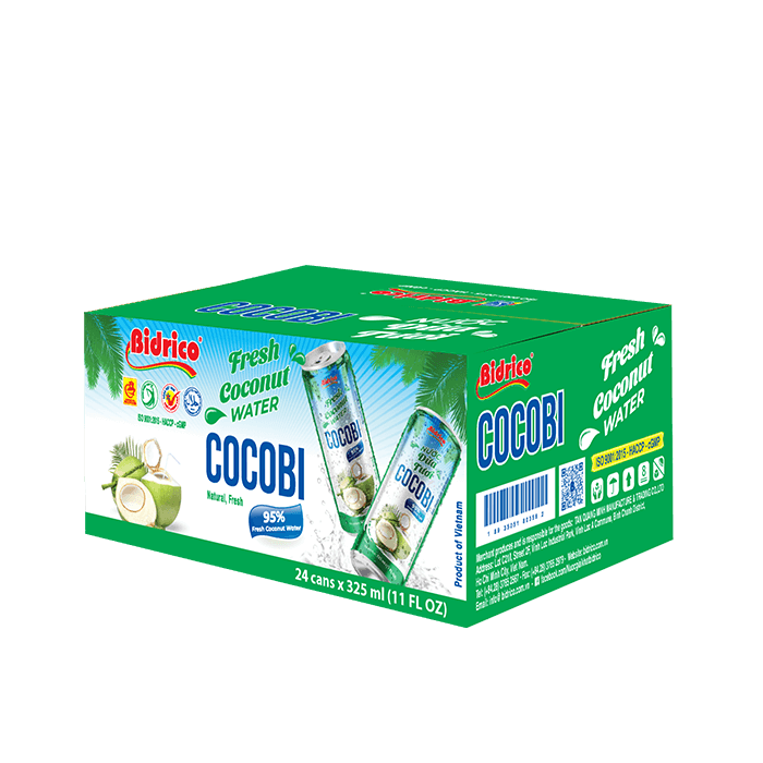 ContactCocobi fresh coconut water 325ml can is extracted from the freshest coconuts of the “Coconut Capital” Ben Tre, ensuring natural sweetness and pure flavor. With UHT sterilization technology and strict quality control, each can of coconut water meets the highest standards of food hygiene and safety.