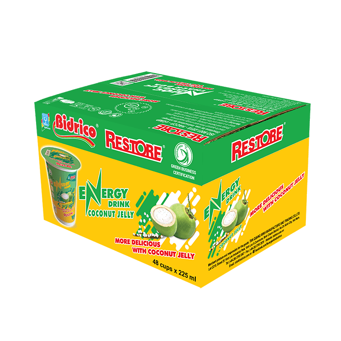 With a compact and convenient design, the product is contained in a 225ml cup, easy to take away when doing outdoor activities. Along with a safe and hygienic production system, Restore energy drink coconut jelly confidently brings customers good and quality product experiences.