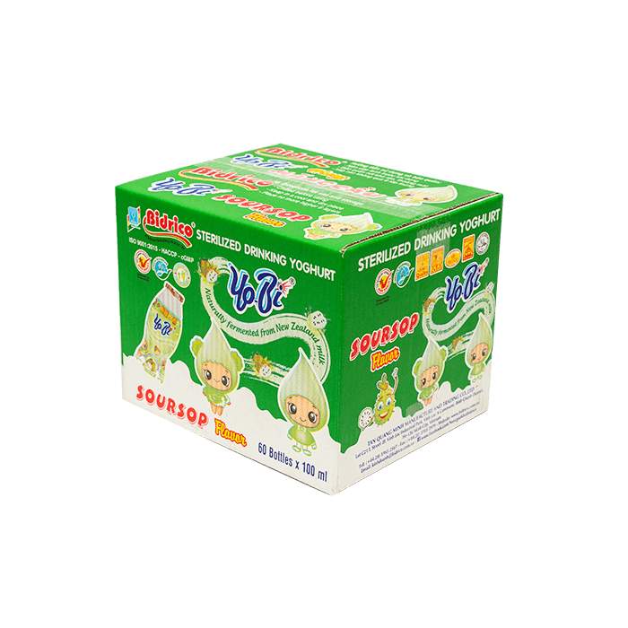 ContactYobi sterilized drink yoghurt soursop flavor is a nutritious product with a blend of sweet and sour taste from soursop extract and the fatty aroma of pure milk powder. The product is manufactured on modern European lines and technology, completely closed and automatic.