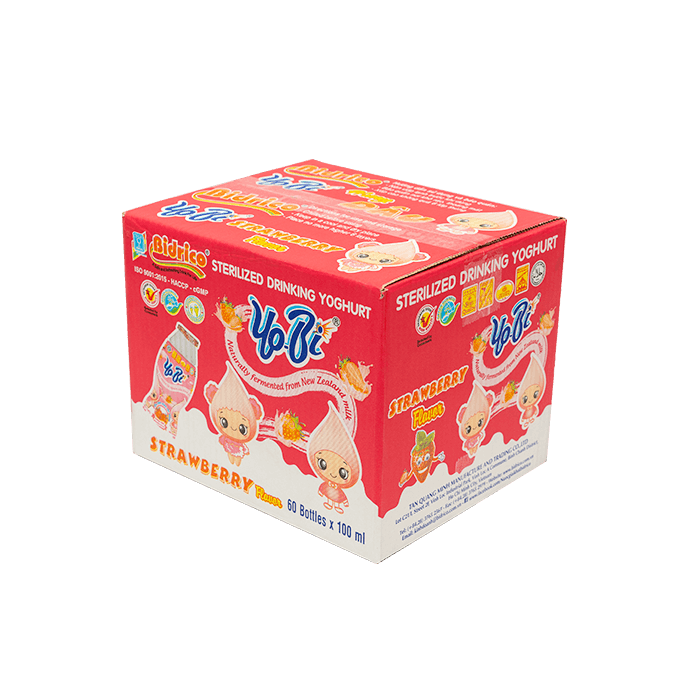 ContactYobi sterilized drink yoghurt strawberry flavor is a nutritious product with a blend of sweet and sour taste from strawberry extract and the fatty aroma of pure milk powder. The product is manufactured on modern European lines and technology, completely closed and automatic.