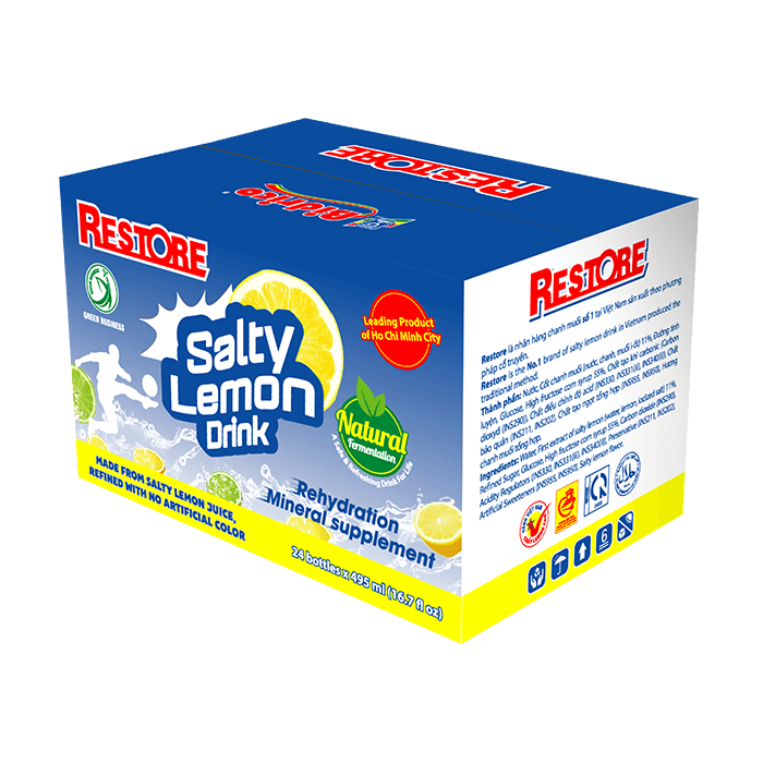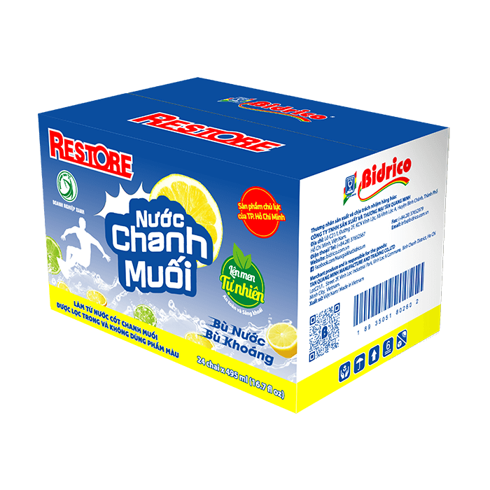 Liên hệNước chanh muối Restore vinh dự là sản phẩm chủ lực Tp.Hồ Chí Minh giai đoạn 2018-2020 và 2021-2025. Đồng thời là sản phẩm, dịch vụ tiêu biểu TP.HCM năm 2017 – 2023 và Sản phẩm công nghiệp và công nghiệp hỗ trợ tiêu biểu TP.HCM năm 2022 – 2024.
