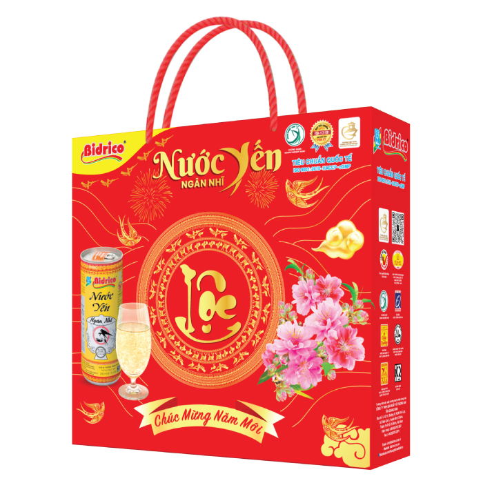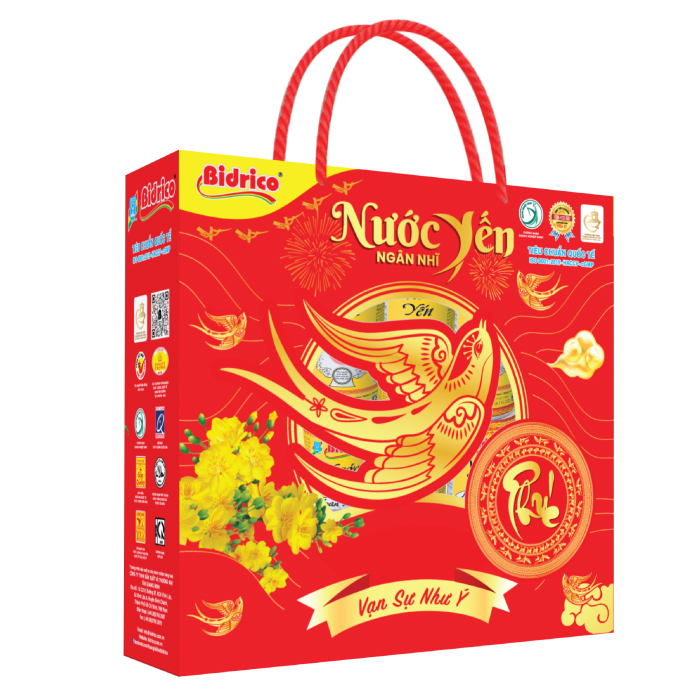 Liên hệNước yến ngân nhĩ hộp xuân Bidrico: Với tông màu đỏ ấm áp kết hợp sự tinh tế trên từng đường nét, tô điểm cho đàn chim yến bay lượn báo hiệu sự sum họp và gắn kết cho mùa xuân mới. Sản phẩm có nguồn gốc từ thiên nhiên giúp bồi bổ và tăng cường sức khoẻ. Là sản phẩm cao cấp của BIDRICO sản phẩm đạt tiêu chuẩn FDA – FCE – SID, xuất khẩu sang Hoa Kỳ Được sản xuất trên dây chuyền hiện đại của Châu Âu.